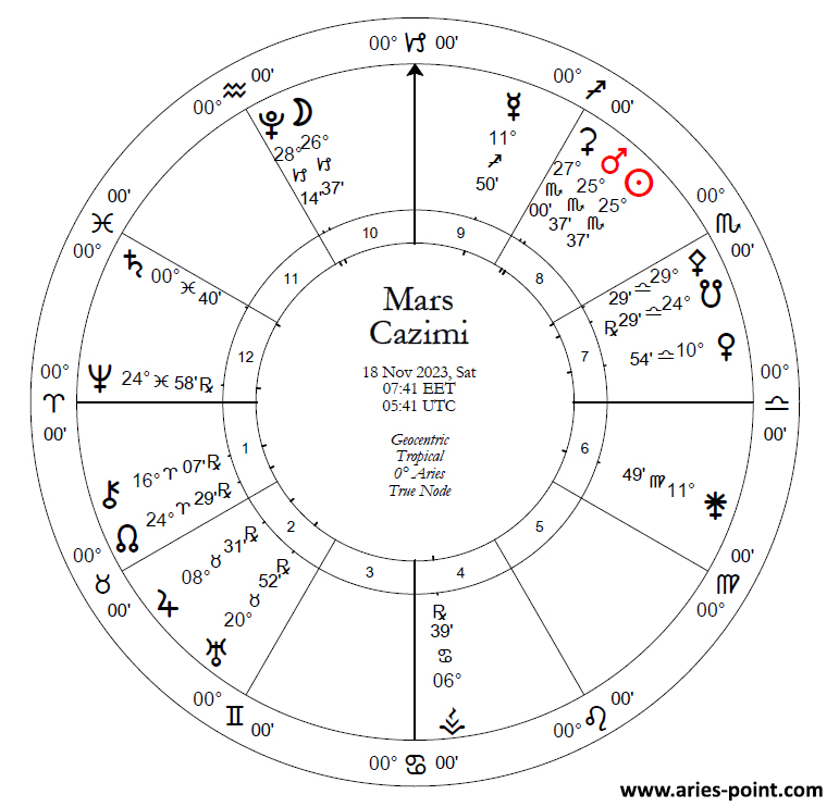 Current Sun-Mars cycle started in November 18-19th , 2023 at 25-26 Scorpio