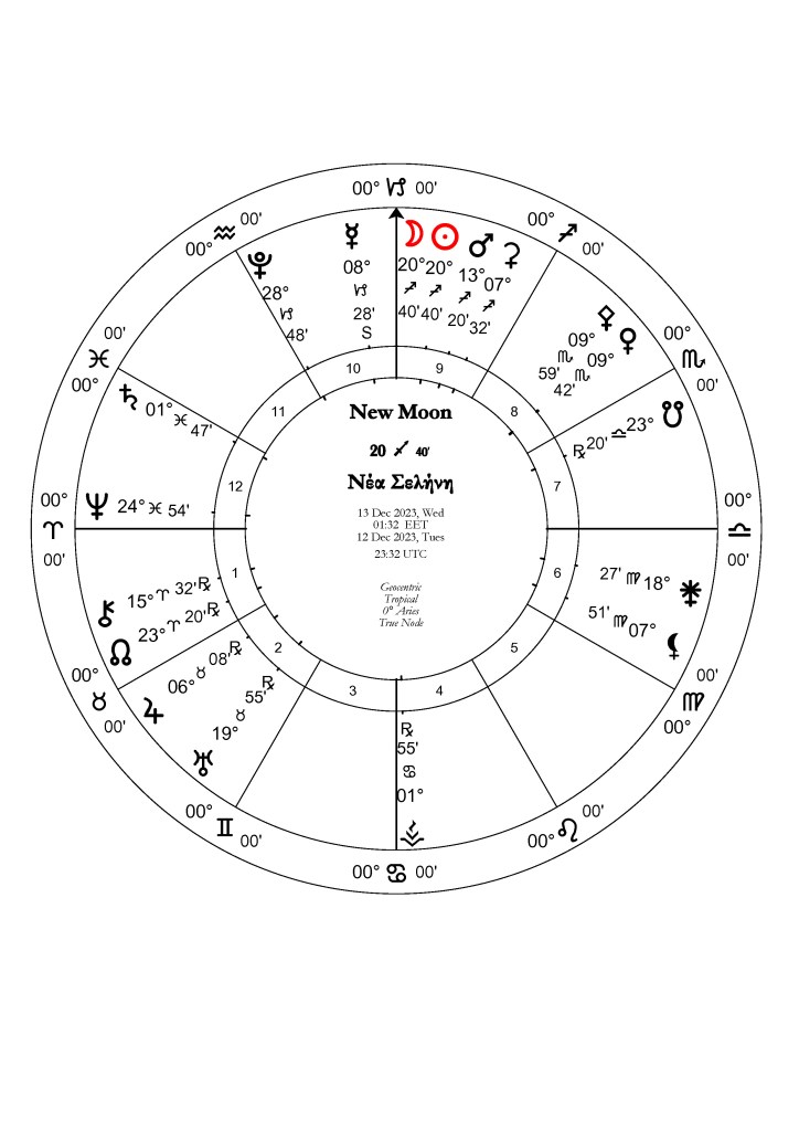 Αυτός ο κύκλος της Νέας Σελήνης στον Τοξότη έχει μια χροιά προφητείας ή/και πυροδοτεί αναμνήσεις από το παρελθόν. Κάτι επαναλαμβάνεται. Δεν ευννοείται να αναβάλλουμε θέματα που είναι σοβαρά ή επείγοντα, γιατι μπορεί να επιδεινωθούν. Ωστόσο, δεν χρειάζεται να βιάζόμαστε με σημαντικές αποφάσεις και κινήσεις, λόγω απαισιοδοξίας, συναισθηματικής έξαρσης, παρατεταμένων καθυστερήσεων και εμποδίων ή απλώς επειδή νοιώθουμε πως πρέπει να κάνουμε κάτι χωρίς να ξέρουμε τι είναι αυτό. Το οράμα, η στρατηγική και οι προσδοκίες γύρω από αυτά (προσωπικά, οικονομικά ή άλλα) δεν είναι ακόμη ξεκάθαρα ή χρειάζονται περαιτέρω βελτίωση. Μπορεί όμως να είναι ενδιαφέροντα, να μας εμπνέουν και να μας οδηγήσουν σε νέες κατευθύνσεις. Η έκφραση συναισθημάτων και το μοίρασμα ευνοείται με εκείνους που είναι στον στενό μας κύκλο ή με εκείνους με τους οποίους μοιραζόμαστε αναμνήσεις και κοινά ενδιαφέροντα. Μπορεί να βρίσκονται είτε κοντά ή μακριά.