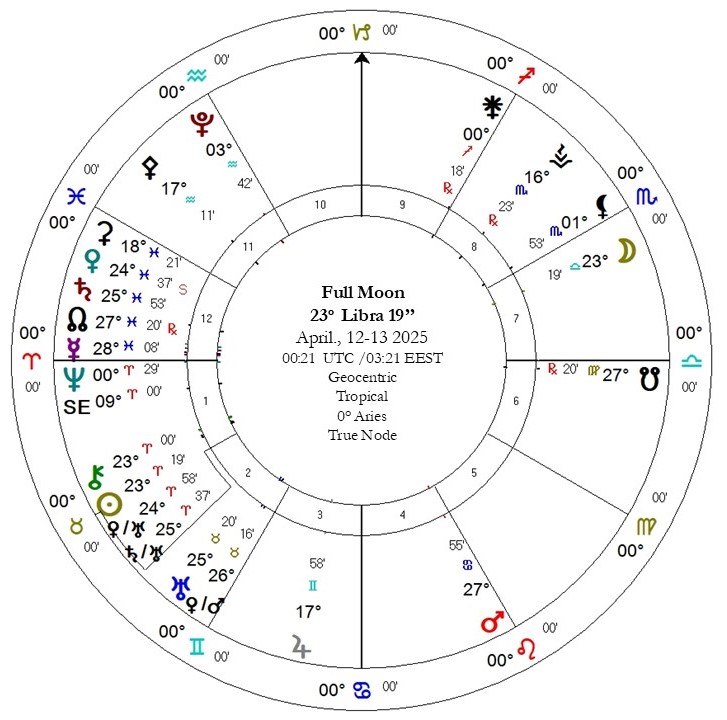 Η συγκεκριμένη φωτίζει μια πρώτη εικόνα, από ότι αποκάλυψε η Ηλιακή Έκλειψη στις 29 Μαρτίου 2025 (δες προηγούμενη ανάρτηση), ενώ σχετίζεται και διεγείρει και βαθύτερα από το παρελθόν και σημαντικά ζητήματα που καλούνται να εξελιχθούν και να διορθωθούν, αλλά και με προηγούμενα βήματα και γεγονότα που έγιναν τον Ιούλιο του 2024 και τον Οκτώβριο του 2023. (δύο διαστήματα ιδιαίτερα κομβικά στις πολιτικές εξελίξεις, και διαμάχες στον κόσμο). Δεδομένου πως είμαστε σε κύκλο Έκλειψης, η Πανσέληνος είναι πολύ πιο σημαντική, και καθώς τονίζει τα παρορμητικά ζώδια, απαιτεί προσπάθεια, και δράση σε διαφορετικές περιοχές και τομείς τις ζωής που απαιτούν επίσης και ρυθμίσεις και προσαρμογές.