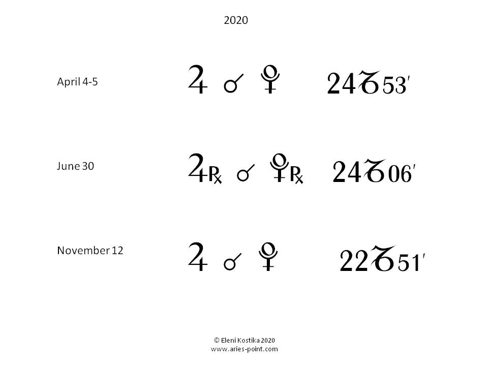 Αυτή είναι η τρίτη και τελευταία σύνοδος το 2020 μεταξύ των δύο πλανητών. Είναι μια στιγμή μεγάλης πνευματικής δύναμης, αλλά και μια στιγμή που συλλογικά θα αντιληφθούμε πολλά για το πώς αναπτύσσεται ο ‘πλούτος’ και τα σχέδια ή οράματα των όσων κατέχουν ισχύ ή διαχειρίζονται τον πλούτο και την ενέργεια στον πλανήτη. Παρατηρούμε το τι συμβαίνει στον πλανήτη αυτή την χρονική στιγμή και βλέπουμε τις εξουσίες και σχέσεις μεταξύ τους να αλλάζουν είτε χέρια, ή την δυναμική των ισορροπιών τους  ή την στάση τους. Θα έχουμε ανακαλύψεις, αποκαλύψεις και νέα δεδομένα σε πολλά επίπεδα και με σημαντικό αντίκτυπο στις ζωές μας: χρηματοπιστωτικός τομέας, διοικητικός και επιχειρηματικός τομέας, ανάπτυξη και ανάπλαση, επιστήμη, αρχαιολογία, ορυκτός πλούτος, διαφθορά.